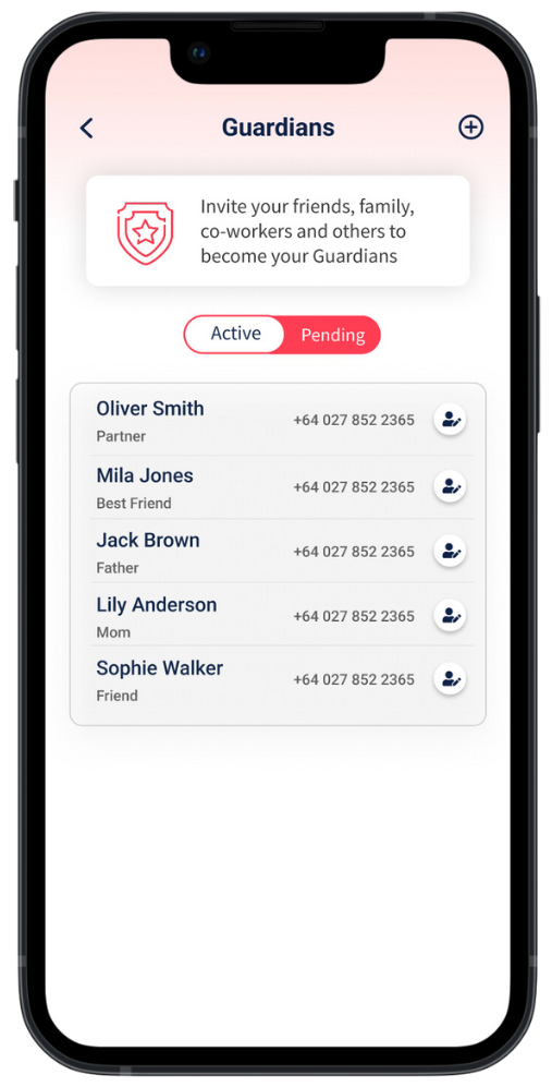 If something isn’t right, press the SOS button. A silent alert is sent to your Guardians, sharing live location and streaming audio so they understand what’s happening immediately.